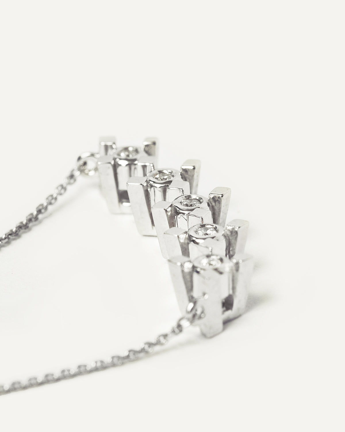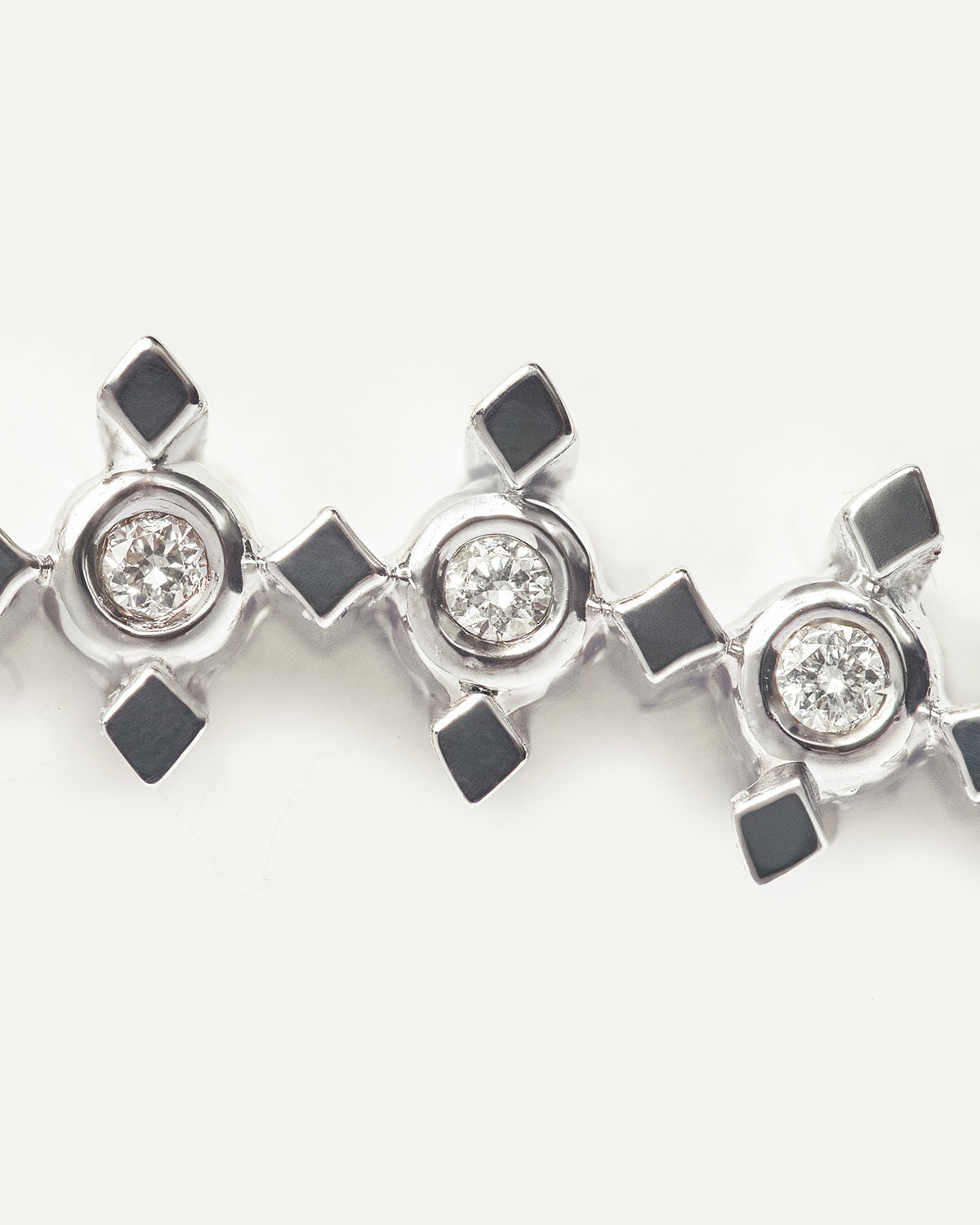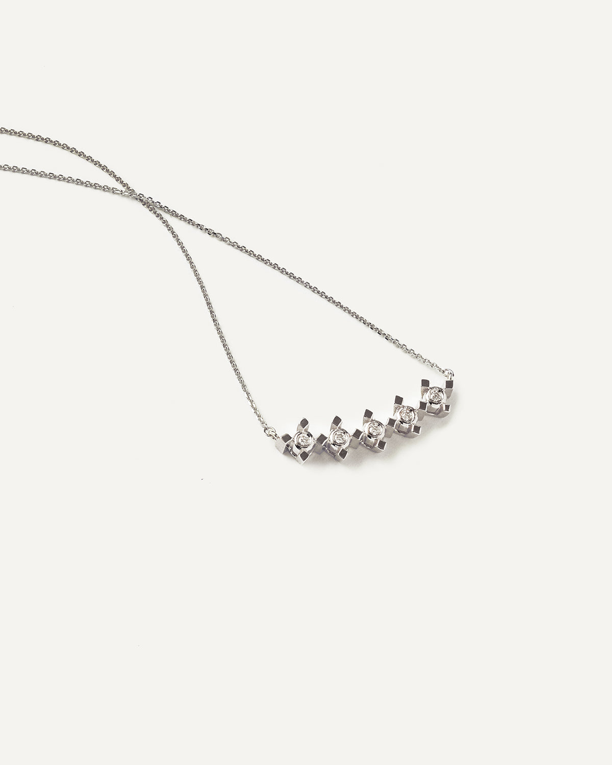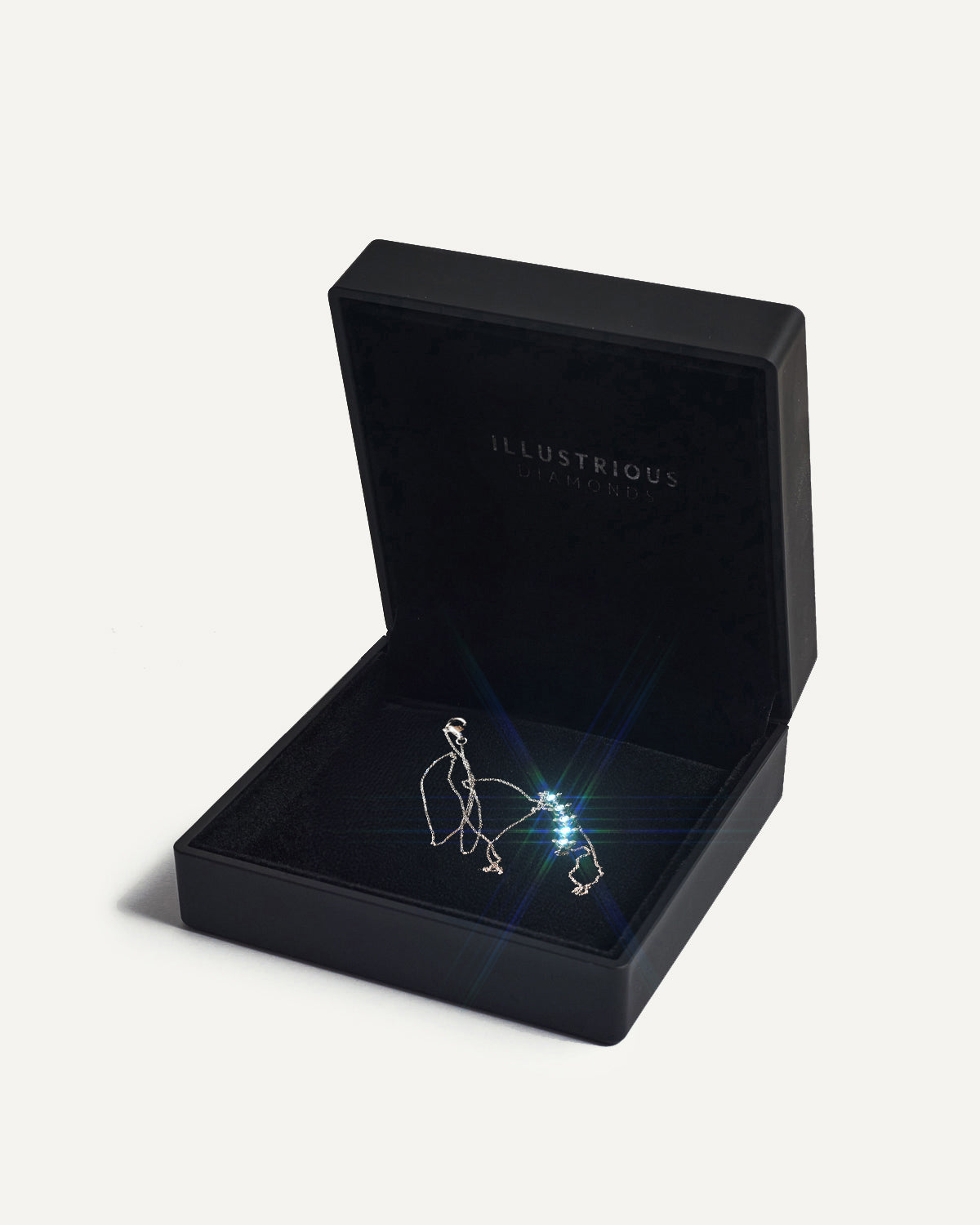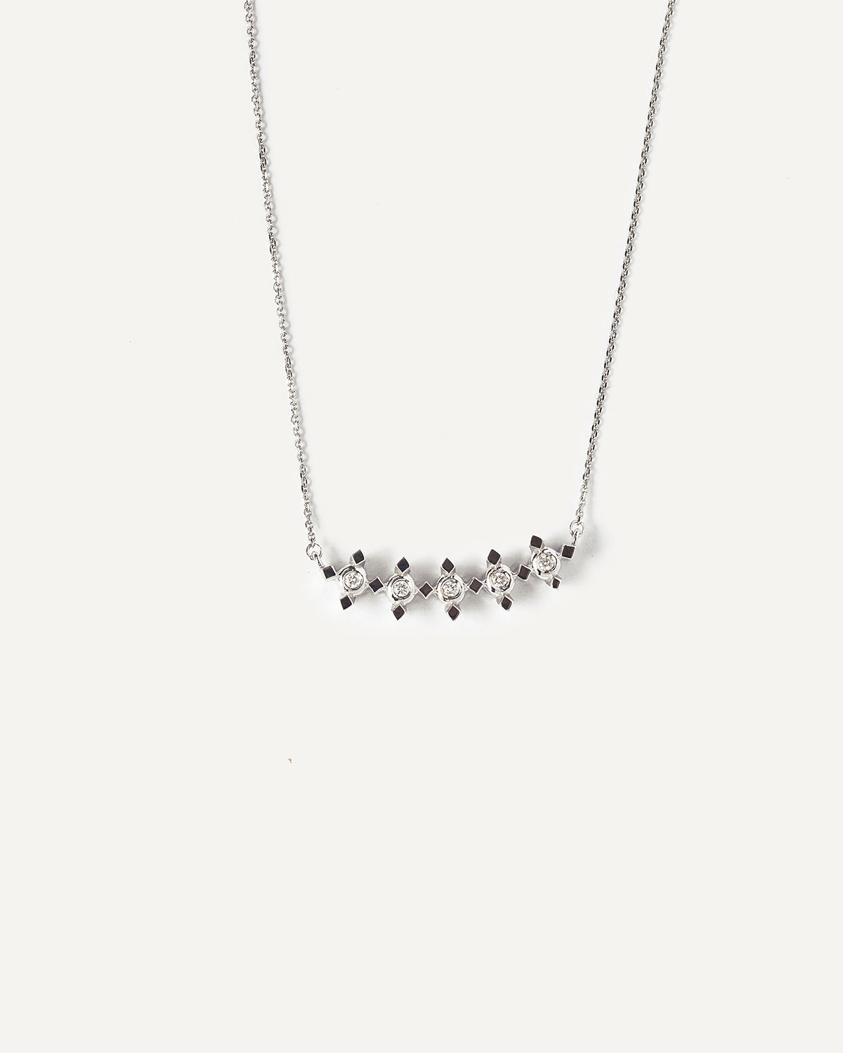 Inspired by the beauty of movement and balance, the Ethereal Flow Necklace is a refined expression of grace. Set in with its delicate design features a flowing arrangement of brilliant white diamonds—each stone capturing light with effortless brilliance. Minimalistic yet striking, this piece pairs seamlessly with the Ethereal Spark Earrings, embodying a timeless elegance that transitions effortlessly from day to night. A symbol of harmony, confidence, and understated luxury.