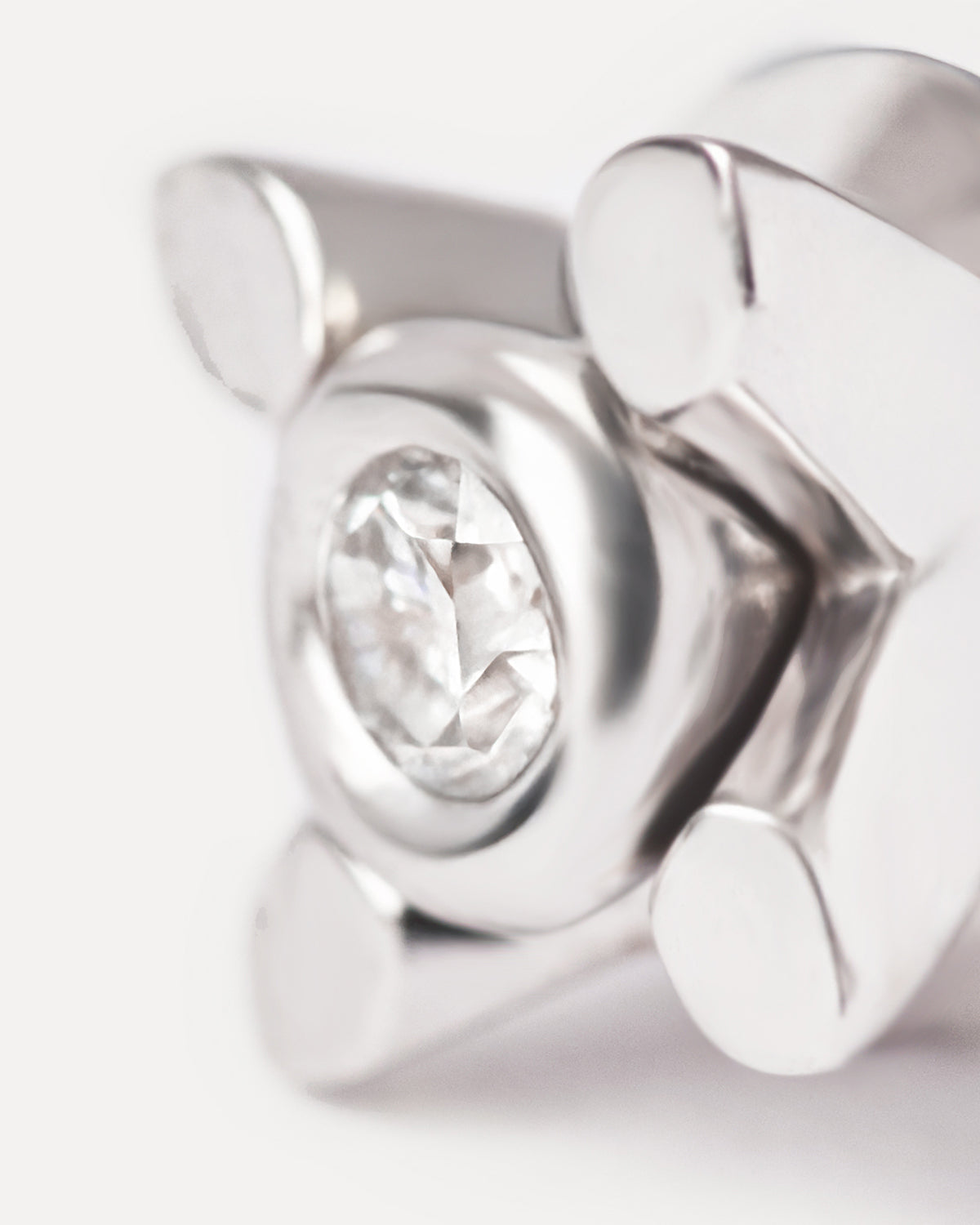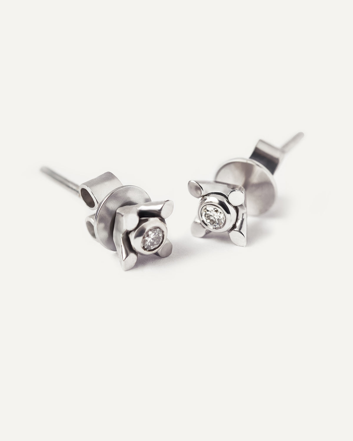 A testament to effortless elegance, the Ethereal Spark Earrings embody the beauty of simplicity. Crafted and adorned with brilliant white diamonds, these minimalistic studs radiate a quiet confidence. Their understated design makes them a versatile companion—whether worn alone for a refined touch or paired with other pieces to create a layered look. A subtle yet powerful statement of grace and sophistication.