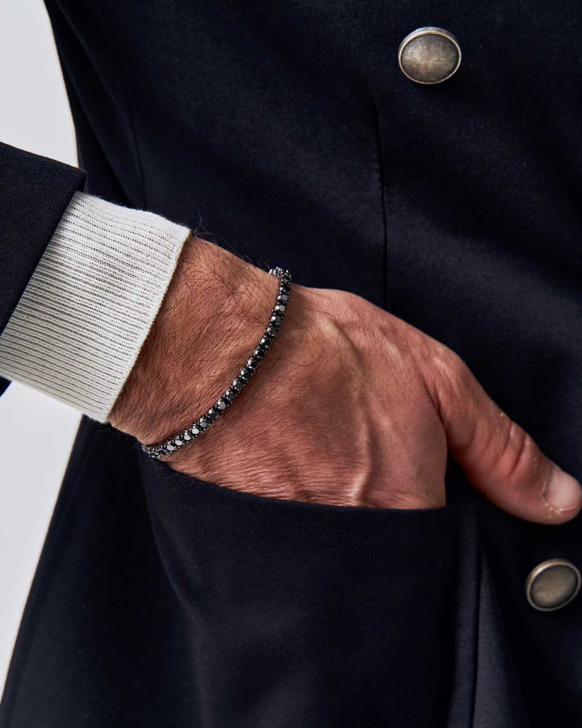 Embrace the mystique of midnight with this stunning black diamond bracelet, a sleek and sophisticated accessory that adds a touch of allure to any ensemble.