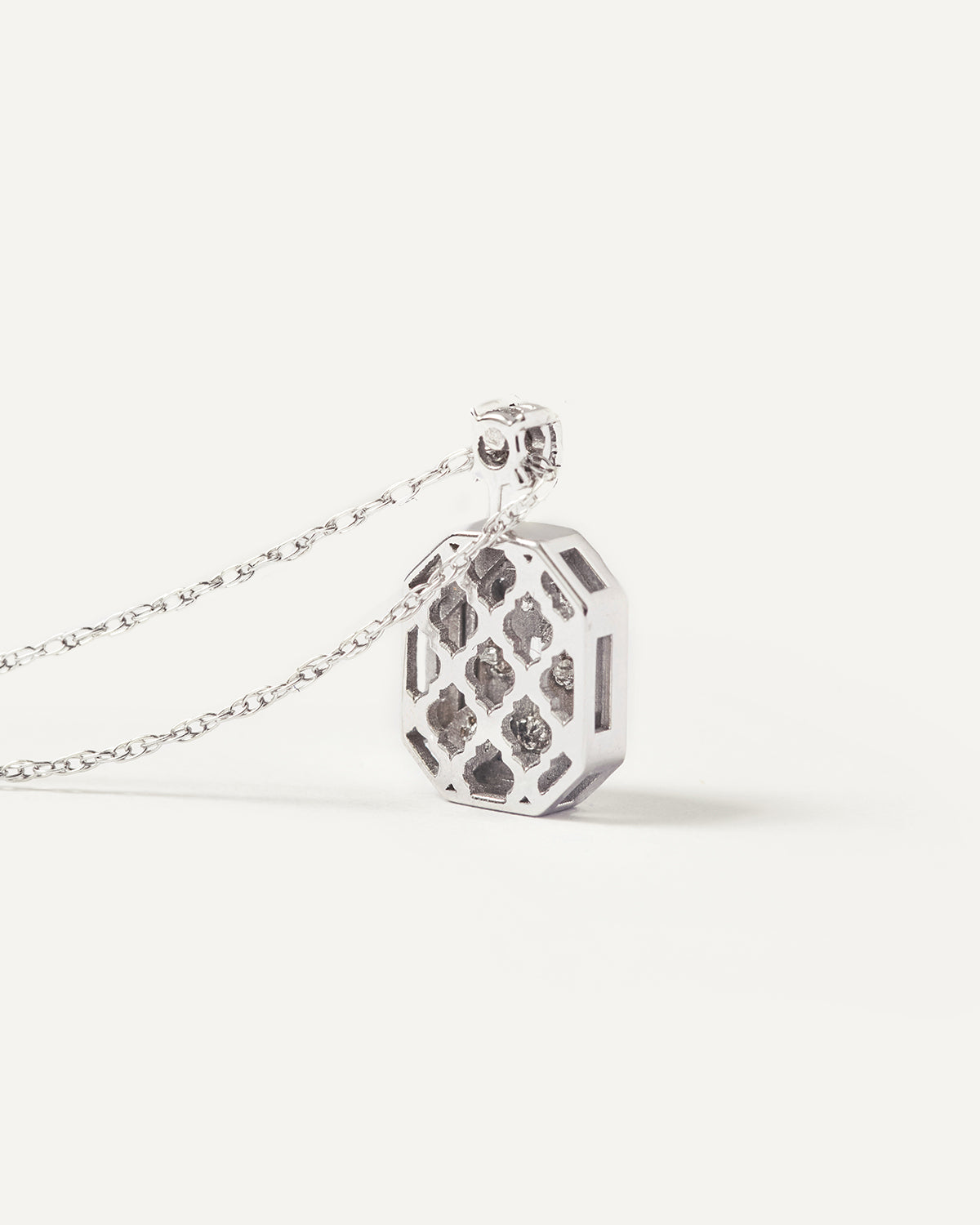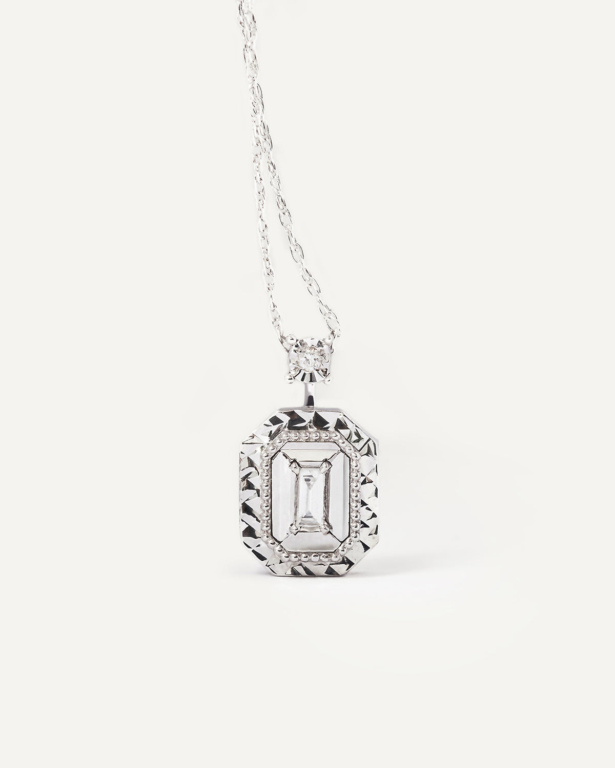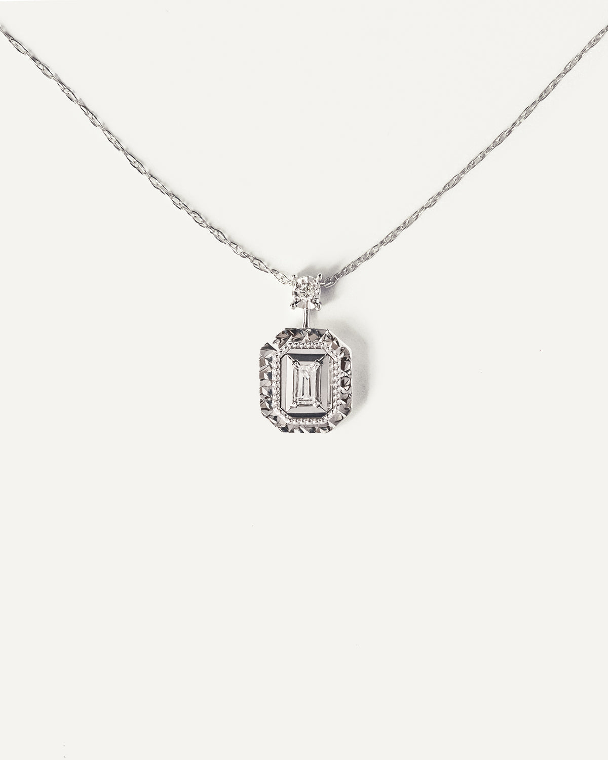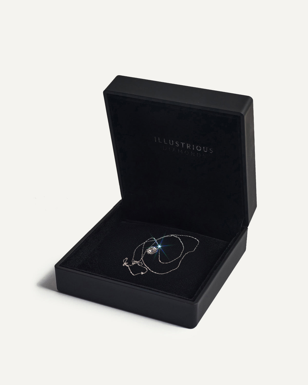 The Majestic Grace Necklace radiates refined elegance with its emerald-cut diamond centerpiece, delicately framed by a halo of shimmering stones. Suspended on a fine white gold chain, this necklace exudes timeless beauty, making it a perfect companion to the Majestic Radiance Earrings. Whether worn alone or as part of a set, this piece symbolizes strength, grace, and lasting brilliance—designed to illuminate every special moment.