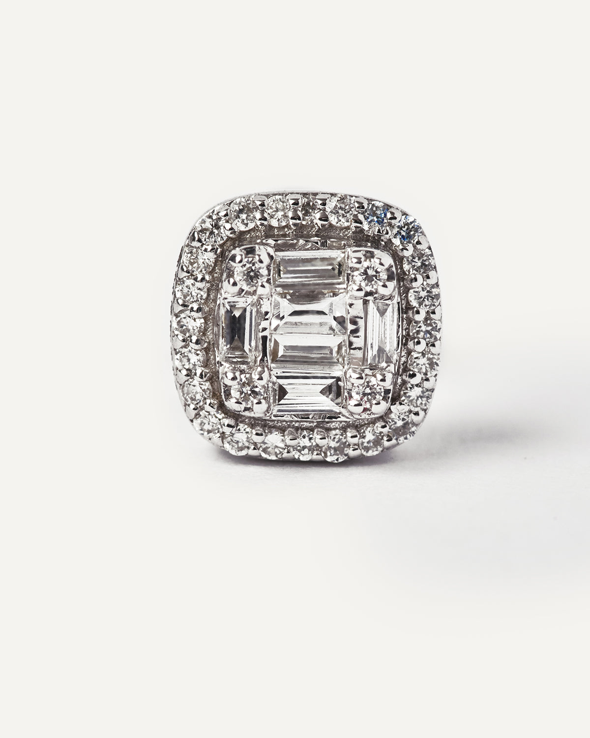 A singular masterpiece of elegance, the Sole Brilliance Earring celebrates individuality with refined grace. Encrusted with dazzling white diamonds, this piece captures light and attention with every movement. Designed for those who embrace their uniqueness with confidence, it is a modern statement of sophistication—perfect for wearing alone or styling in an asymmetric pairing.