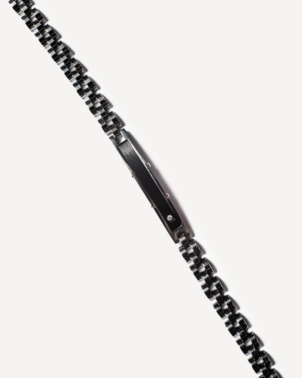Step into elegance with the Twilight Stride Bracelet, featuring dynamic chain links with a sleek black stripe center and a brilliant white diamond stone. Symbolizing the harmony of contrasts and timeless sophistication, this bracelet perfectly balances boldness and grace, making it an exquisite choice for any occasion.